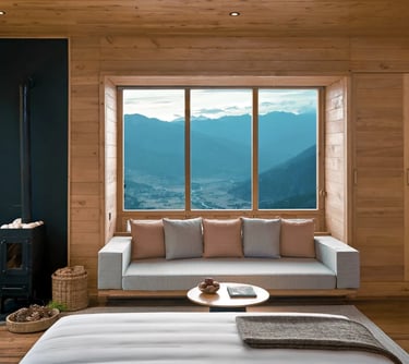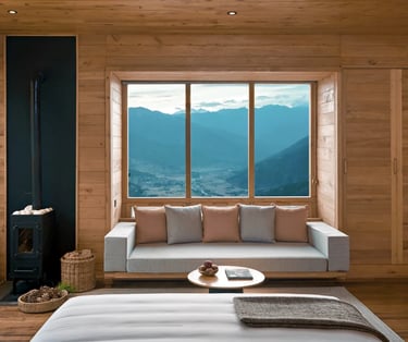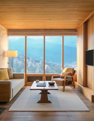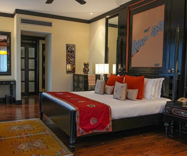 Indulge in our Deluxe King Room, featuring luxurious furnishings and stunning views, perfect for a memorable stay in Bhutan.